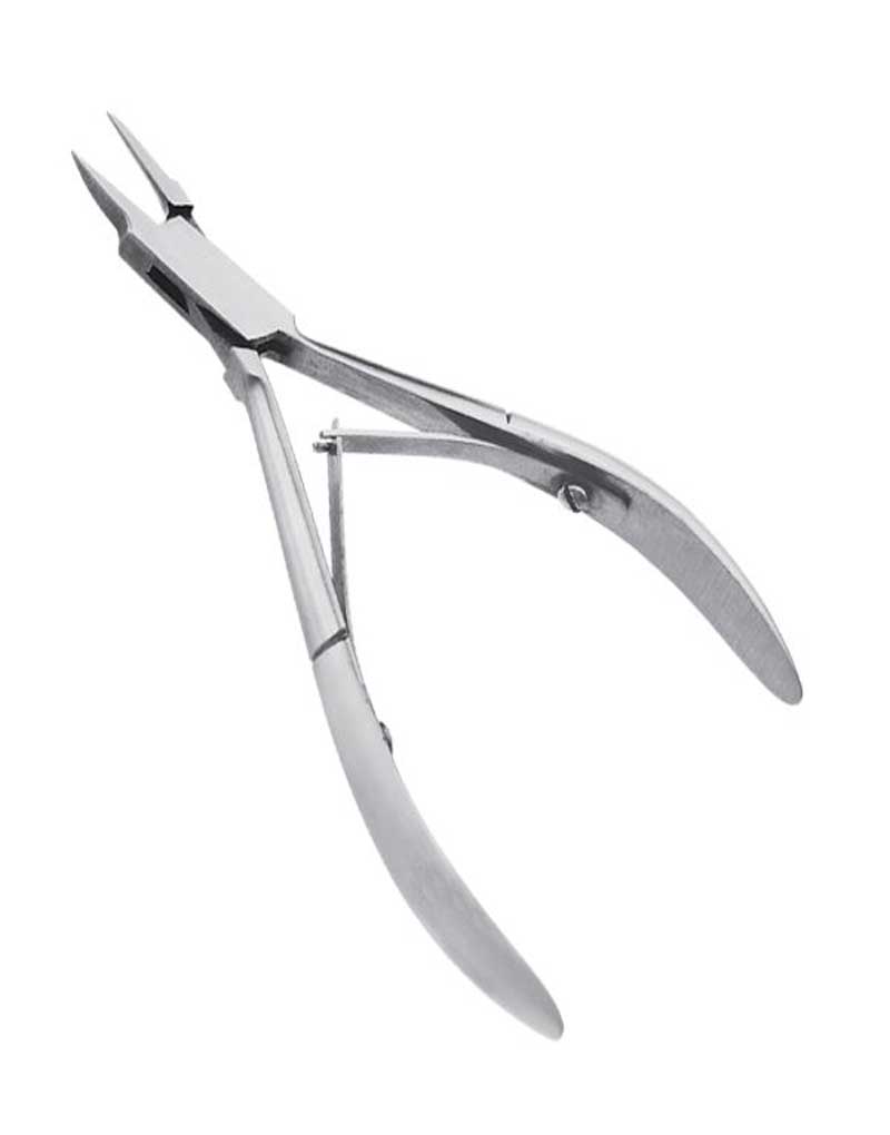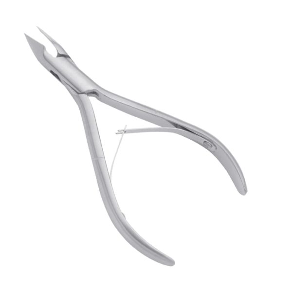 Tip Size: 3mm, 5mm, 7mm, 9mm, 11mm | | | Cuticle Nippers are an ideal nail tool used by professionals to treat tough cuticles and hangnails. Cuticle Nippers are great for trimming thin fingernails and toenails in tight places. The small, stainless steel head on the Cuticle Nippers is designed for precision when trimming ingrown nails. The gold-finish handle is easy to hold. Cuticle Nippers differ from nail cutters in that they have a basket-shaped cutter box, enabling delicate removal of soft tissue.Water Sand , Available in Titanium 100%, Cobalt 440, High Carbon Steel, in all regular colors and sizes.
